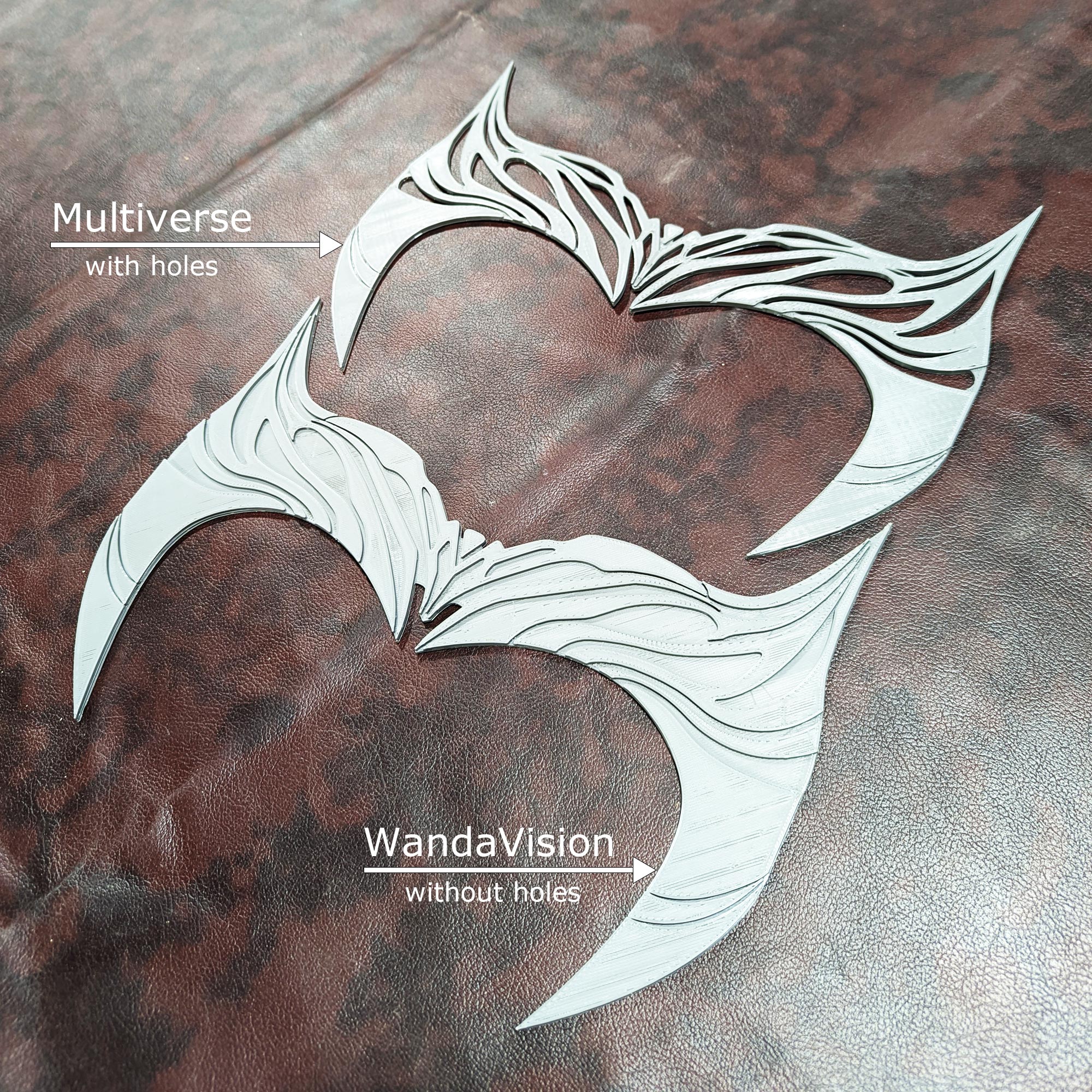 WandaVision version: Is all one flat clean piece ( no holes ) & no battle damage or scratches.