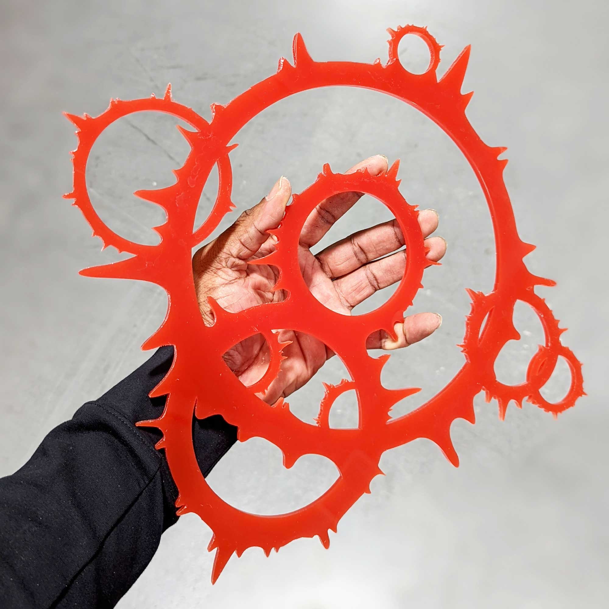 Made from 1/4 in. Laser cut acrylic this amazing prop is perfect for selling the visual effect of magic in your next cosplay. Prop comes with 3 smaller inner rings that can be epoxy’d in place for a more custom fit if you find the center opening is too large.