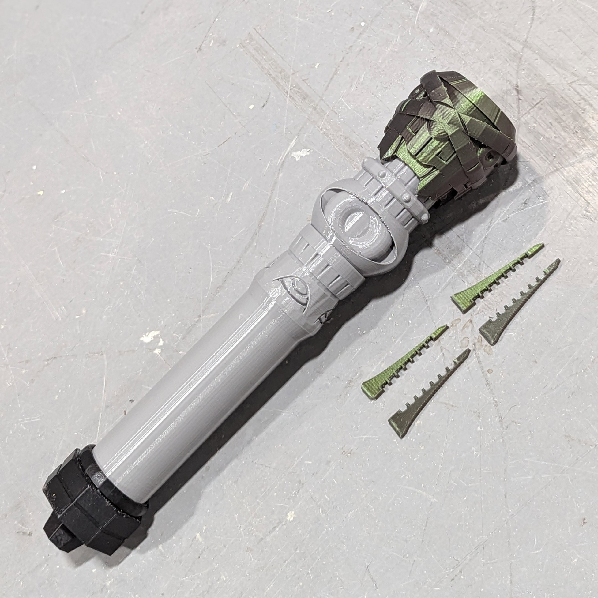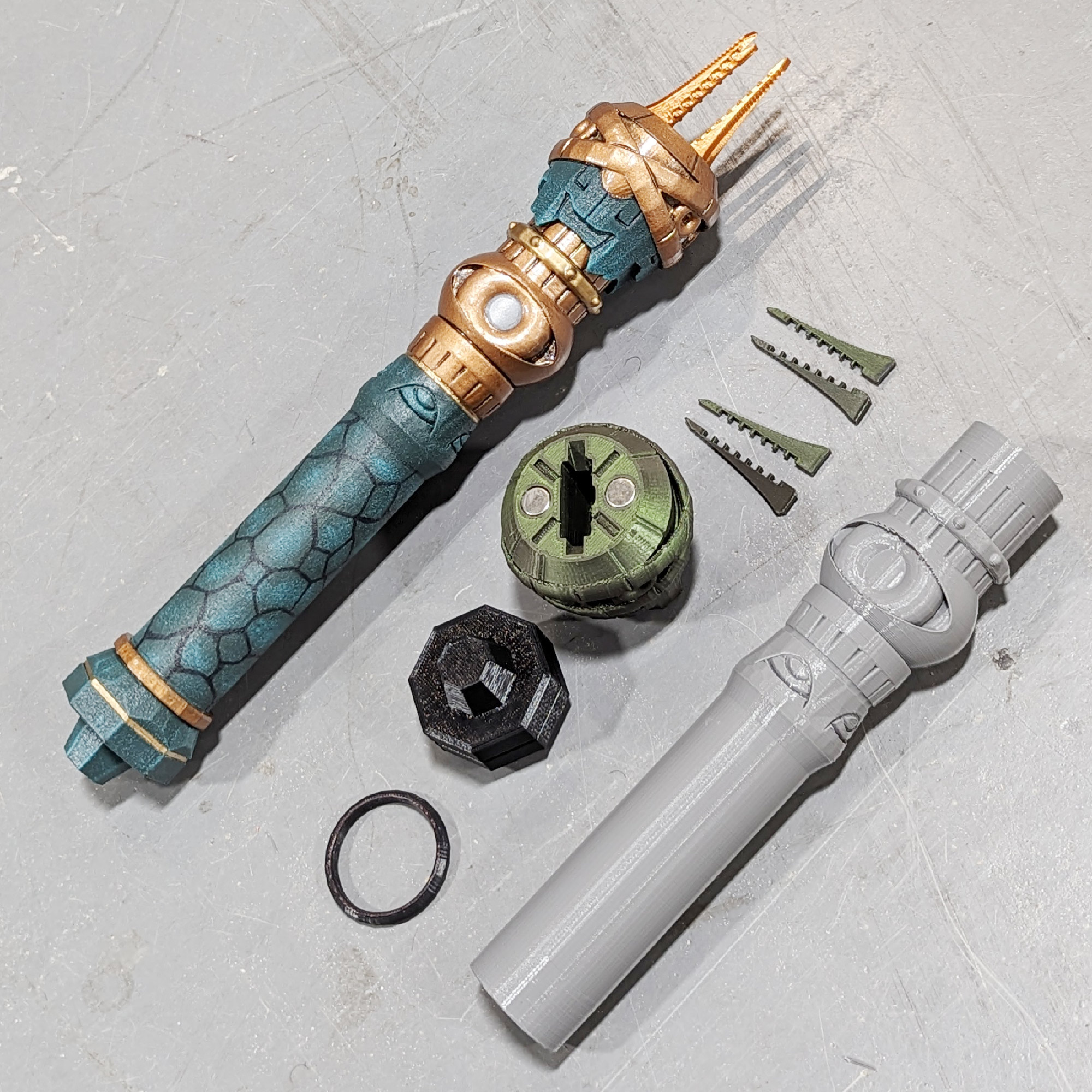 • 8x RAW* PLA 3d printed parts ( x4 spikes, x1 handle, x1 guard, x1 ring, x1 pommel ) in RANDOM assorted colors